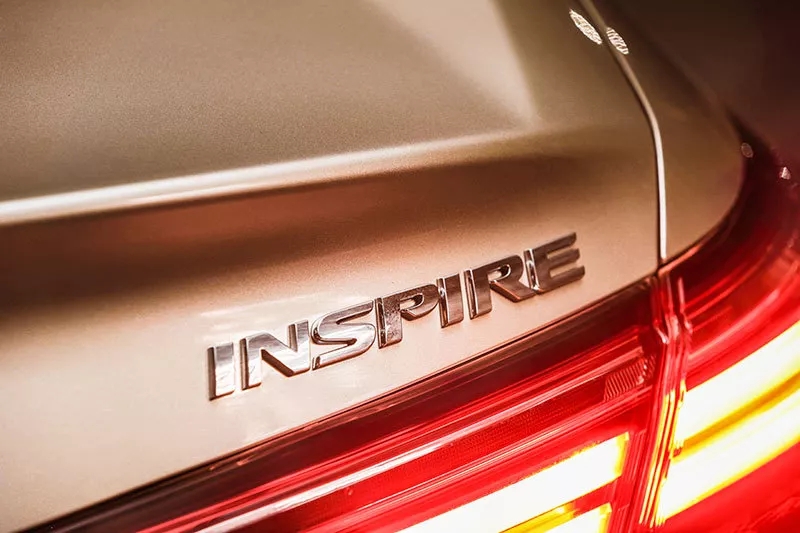 當(dāng)然漂亮的前臉還離不開大燈的畫龍點(diǎn)睛,由6近光+3遠(yuǎn)光共計(jì)9顆LED燈珠組成的全LED燈組像陣列般排開,無(wú)論是白天還是夜晚都讓INSPIRE更加顯目。如果你按下雙閃或者撥動(dòng)轉(zhuǎn)向燈桿,就會(huì)發(fā)現(xiàn)INSPIRE采用了流動(dòng)式轉(zhuǎn)向燈設(shè)計(jì),隨著燈帶的流動(dòng)科技感也隨之上升。來(lái)到尾部,紅色的尾燈組讓INSPIRE顯得動(dòng)感十足,翹起的小尾翼以及雙邊共雙出的排氣也都為運(yùn)動(dòng)風(fēng)格的營(yíng)造做出了貢獻(xiàn)??偟膩?lái)說(shuō),INSPIRE的外觀極具魅力,時(shí)尚而不張揚(yáng),在細(xì)節(jié)處又營(yíng)造了恰到好處的運(yùn)動(dòng)風(fēng)格。尤其我們的試駕車還采用了金色車漆,更是平添了旗艦質(zhì)感。