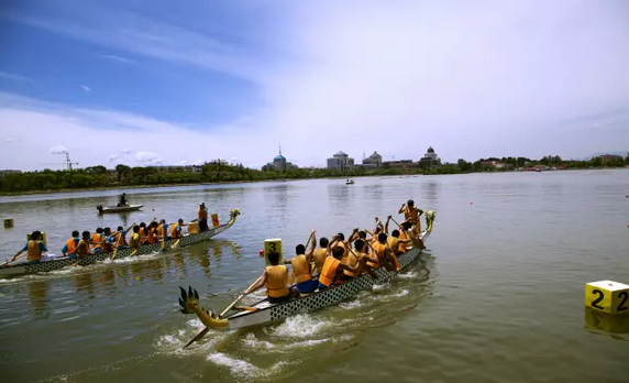 每到端午時(shí)節(jié),南方江河盈滿,得天獨(dú)厚的地理優(yōu)勢(shì)使賽龍舟成為南方獨(dú)一無二的節(jié)日習(xí)俗。號(hào)子震天,龍旗飄飄,指令一下,千帆將從同一始點(diǎn)竟發(fā),好不壯觀。