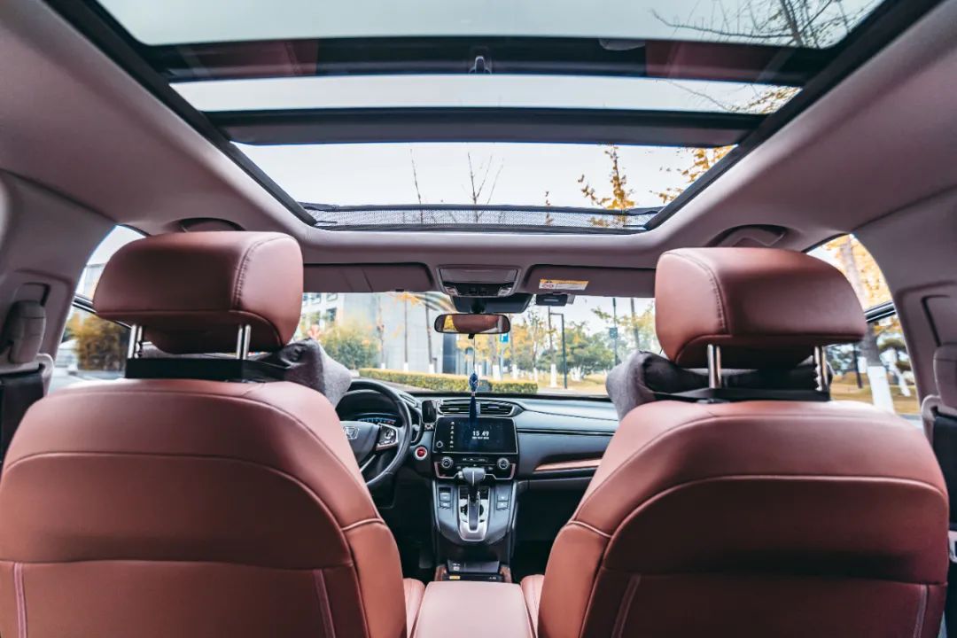 在停車場看看內(nèi)飾,CR-V的內(nèi)飾簡約不簡單,質(zhì)感肉眼可見,配置足夠豐富,全景天窗的視野開闊,入眼盡是秋意濃。