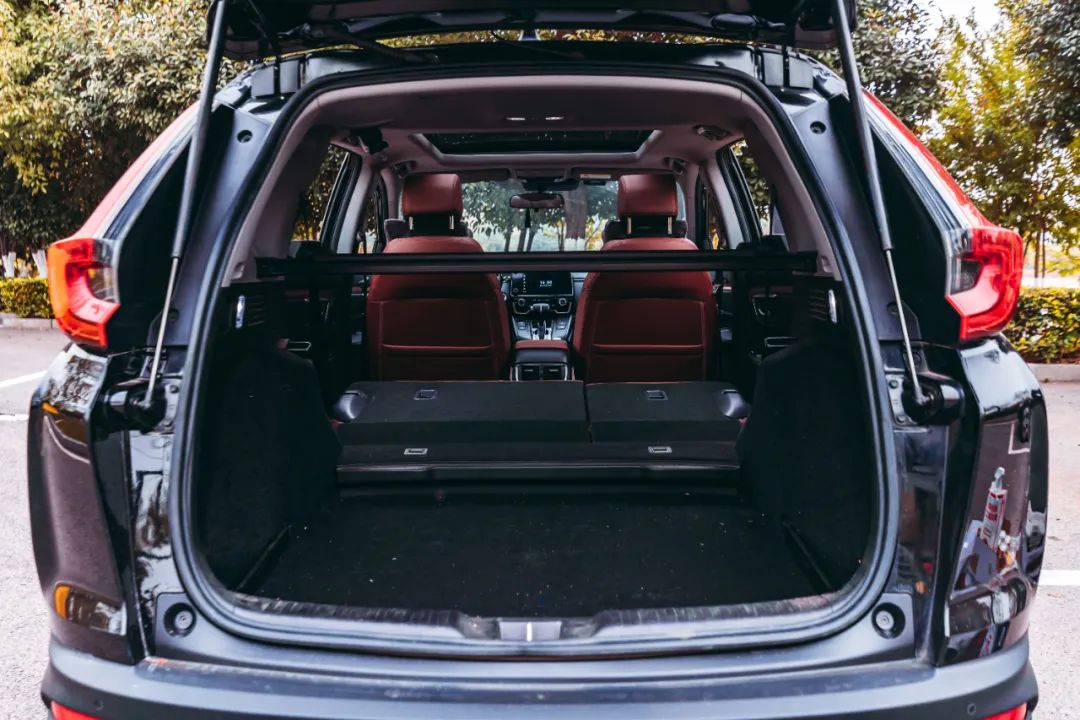 車內(nèi)的空間映入眼簾,寬敞兩個字足以形容,不需要多余的字眼,就是寬敞。前排的空間和視野很開闊,得益于SUV較高的底盤,駕駛視野對于行車更為安全。后排空間也是如此,以我自己舉例,身高176cm,膝蓋距離前排座椅兩拳多,即便坐的端正頭距離車頂也有一拳多空余,后排座椅可以放倒,進一步提高后備廂的可利用空間,哪怕是在車里睡一覺,這樣的空間也足夠,作為家用真的再合適不過了。