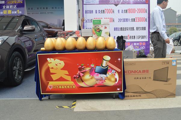 本次巡展不僅安排了開(kāi)幕式新車揭幕、車型推介及有獎(jiǎng)問(wèn)答、模特走秀等精彩節(jié)目,購(gòu)車的客戶還可以參加砸金蛋等活動(dòng)。北京現(xiàn)代的經(jīng)銷商還為客戶準(zhǔn)備了車載吸塵器、電子相框甚至平板電視這樣的禮品。