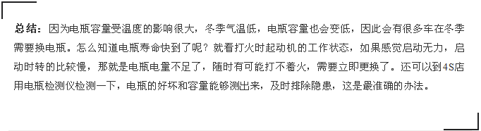 這兩種情況都能導(dǎo)致電瓶一直處于充不滿電的狀態(tài),長期虧電會(huì)使電瓶極板硫化,造成不可逆的損傷,容量會(huì)越來越小,最終導(dǎo)致壽命縮短。這個(gè)原因是最多的,有相當(dāng)多的車開的很少或長期放置。