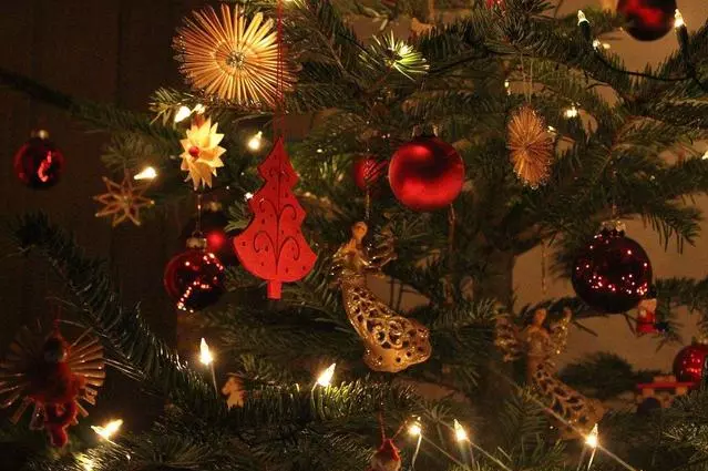 是圣誕節(jié)慶祝中最有名的傳統(tǒng)之一。通常人們在圣誕前后把一棵常綠植物如松樹弄進(jìn)屋里或者在戶外,并用圣誕燈和彩色的裝飾物裝飾。并把一個(gè)天使或星星放在樹的頂上。